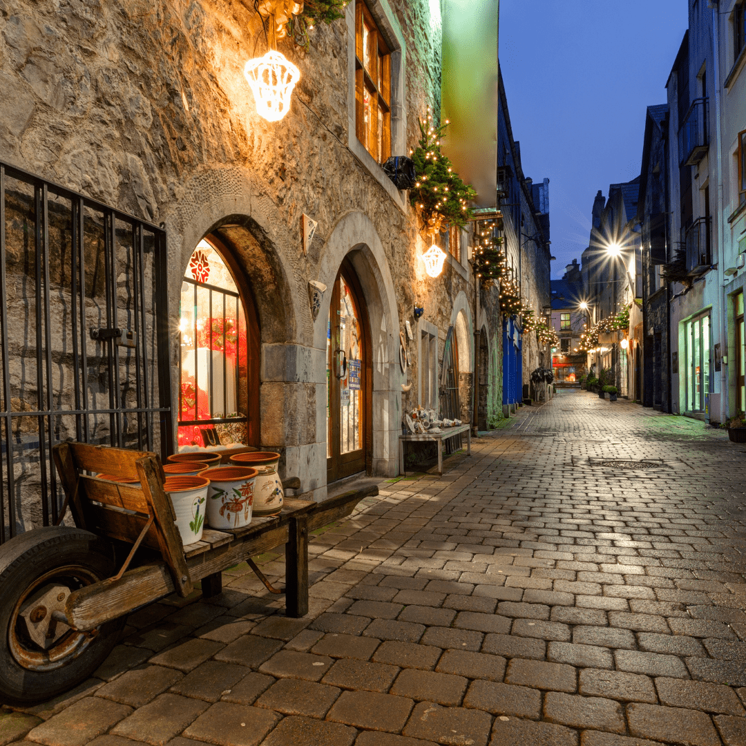 Explore the charming streets of Galway’s city center, known for their colorful shopfronts, lively pubs, and vibrant atmosphere. Take a stroll along Quay Street, Shop Street, and High Street, and soak in the city’s unique blend of medieval and modern charm.