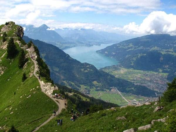 This area has a multitude of varying hikes for the adventurous, from scenic lakeside walks to treks across cliff faces, all through unique landscapes. You can take a railway train or cable car to get to the start of your chosen hike. Popular hikes include the path up to Harder Kulm (2.5 hours) and the route from Interlaken to Lauterbrunnen (3 hours.)