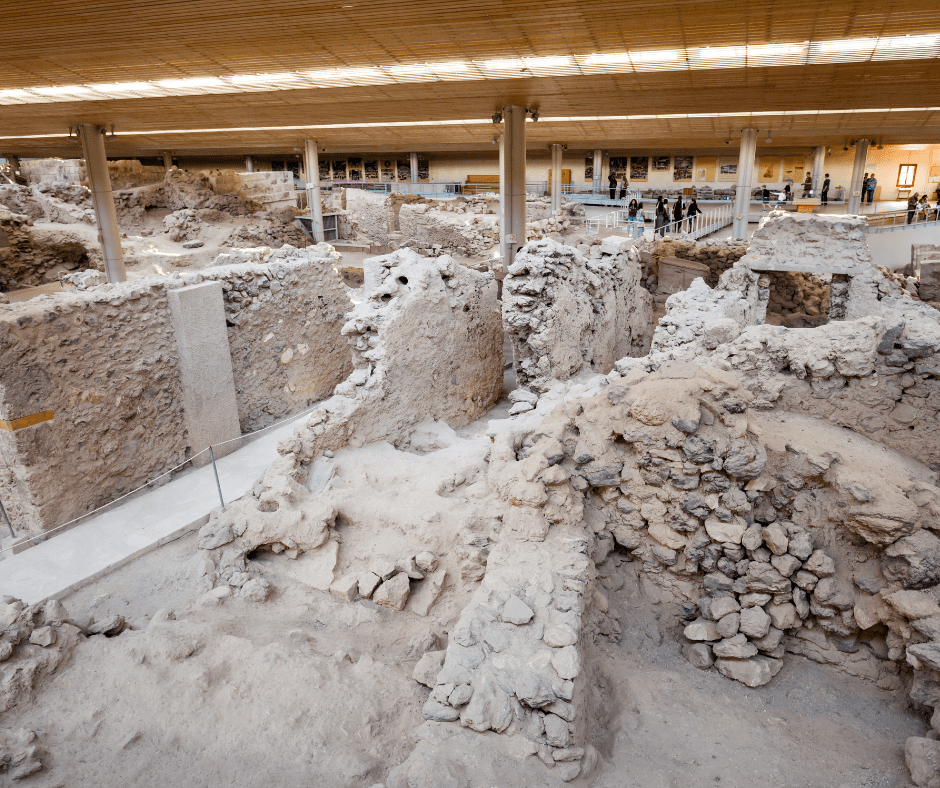 Akrotiri is a Minoan settlement that was buried by a volcanic eruption around 1650 BC. The ruins of Akrotiri were only discovered in the 1960s and are now one of the most important archaeological sites in Greece.